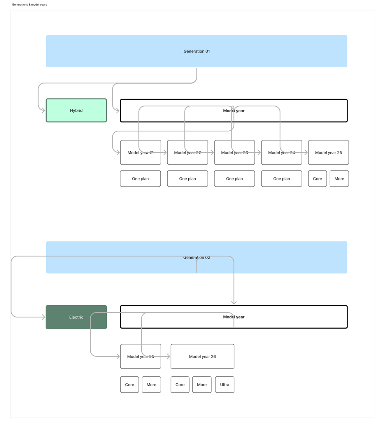 With the launch of Lynk & Co 02 and generation 08, there will be multiple car models, each evolving across different model years.